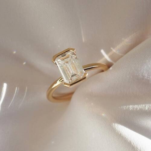 2CT Emerald Solitaire Bezel Set Moissanite Engagement Ring