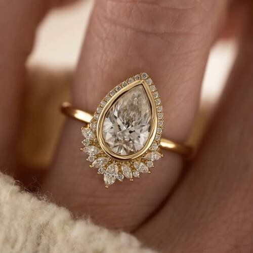 2ct Pear Lab-grown Diamond Engagement Ring With hidden halo
