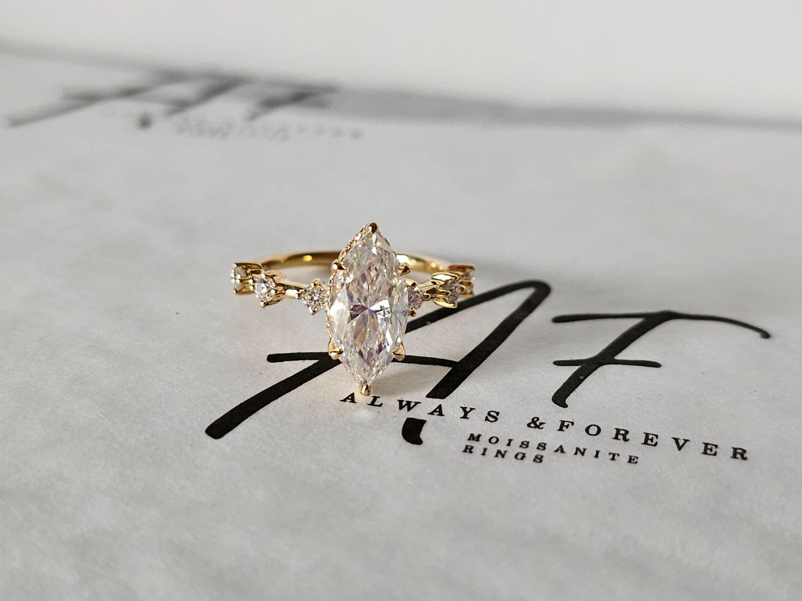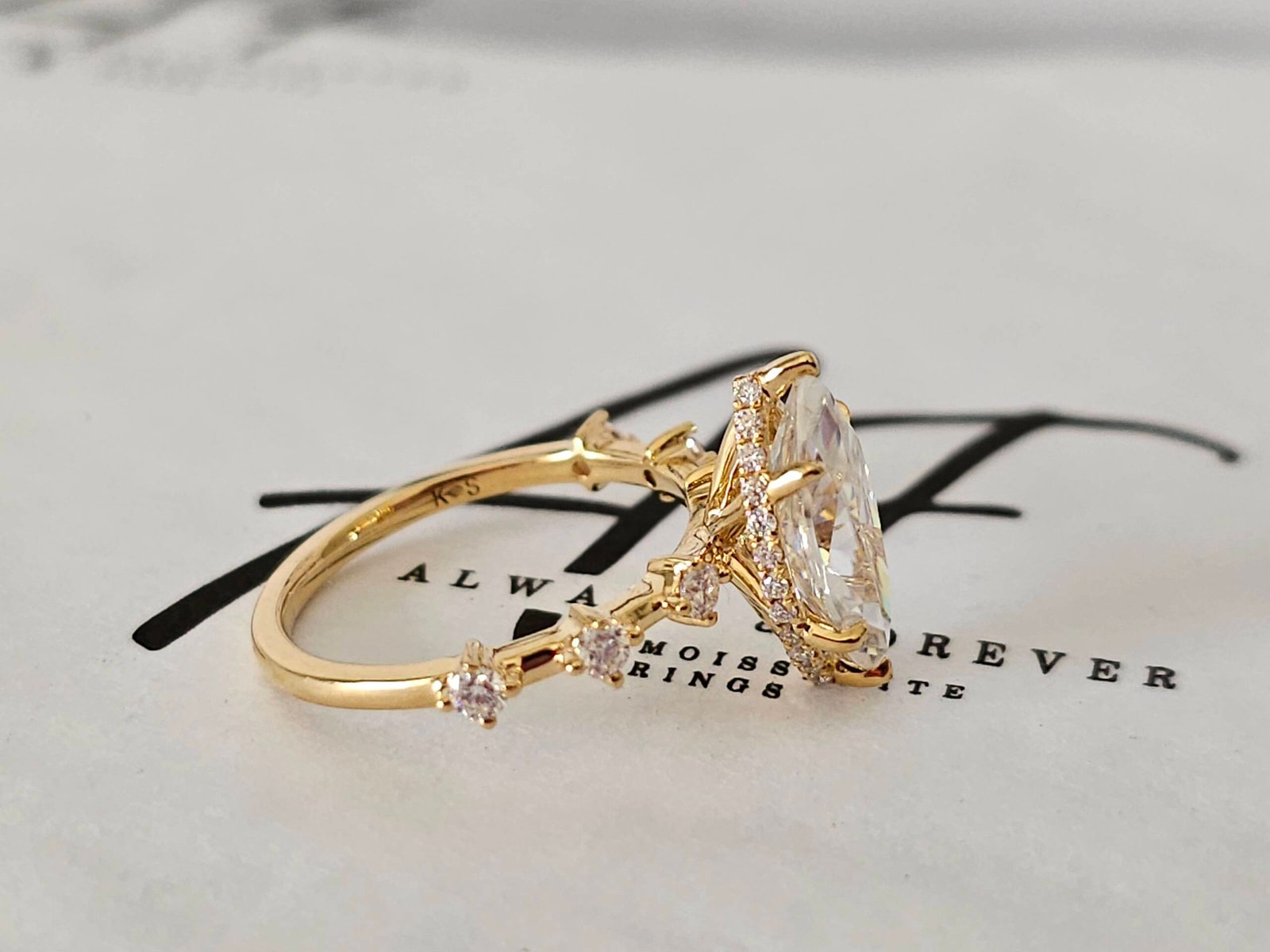 - Accent stones : 2mm Brilliant Round Moissanites