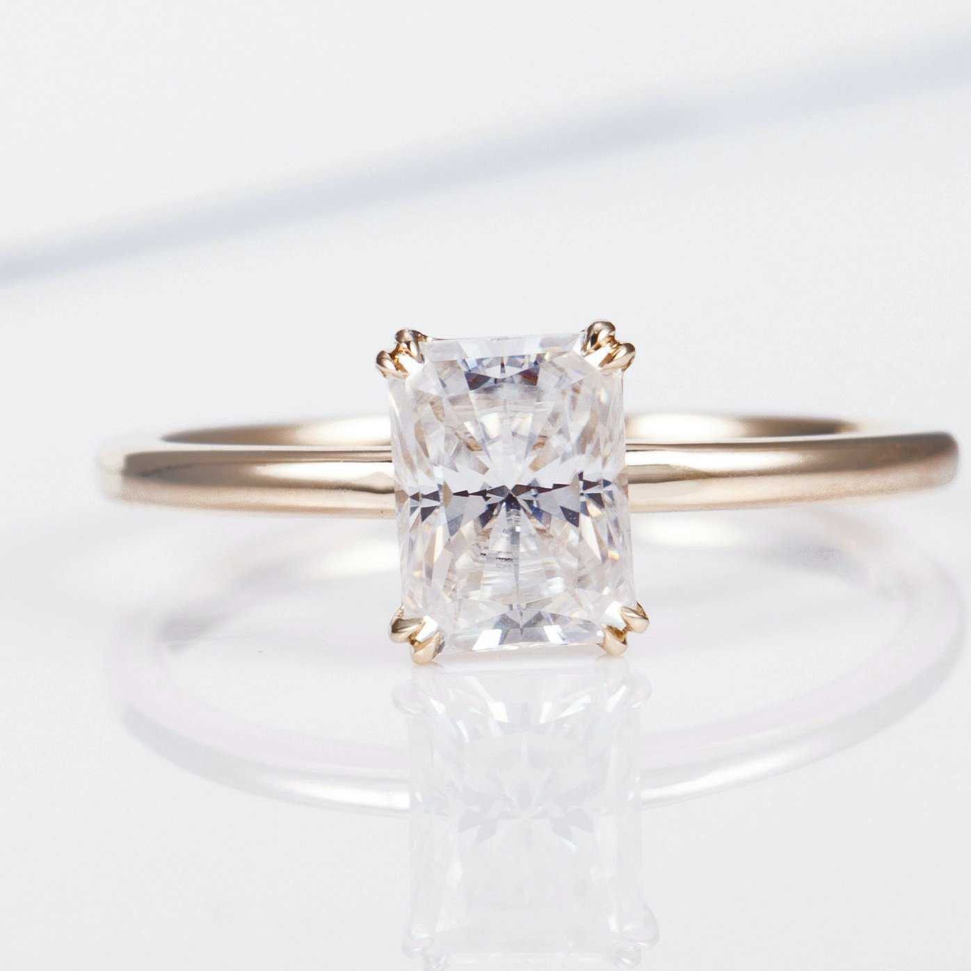 2ct Radiant Moissanite with Double claws in a low solitaire setting