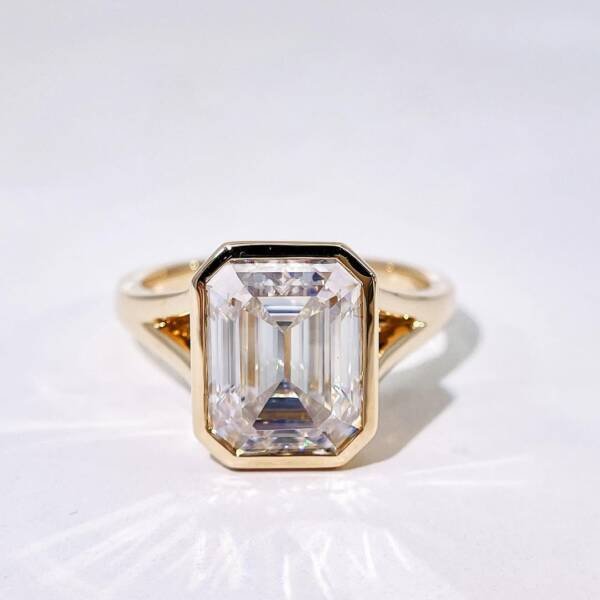 5ct Emerald Moissanite In A Bezel With A Split Shank