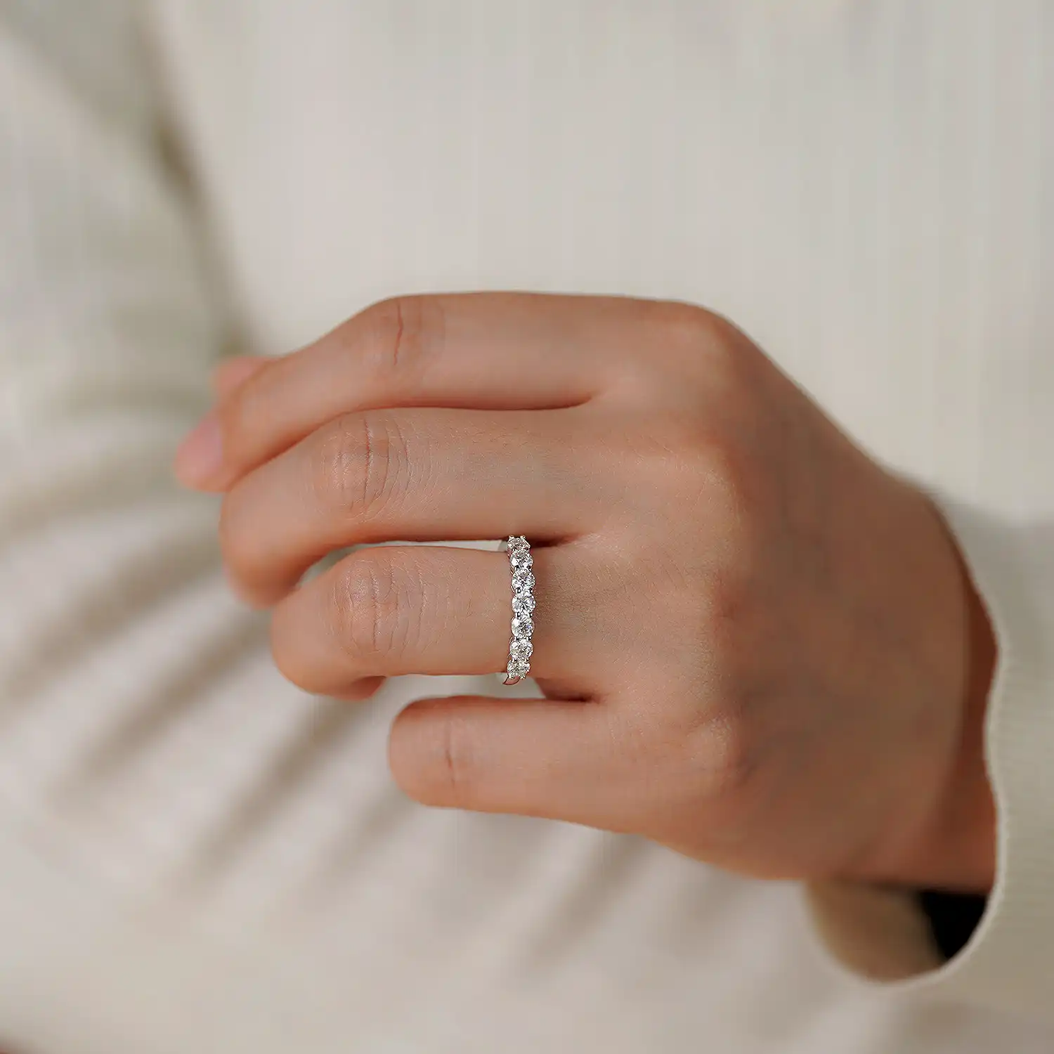 7 Stone 3mm Half Eternity Wedding Band